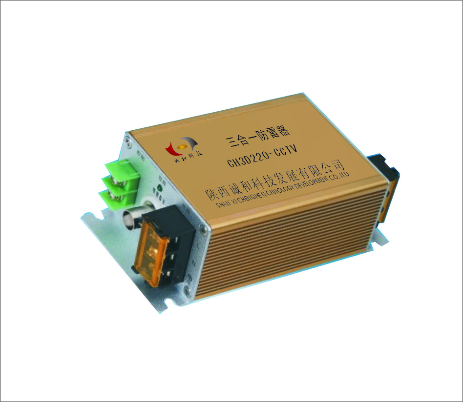 誠和CCTV視頻監(jiān)控系統(tǒng)模擬攝像機三合一防雷器(又稱:模擬球機防雷器、三合一電涌保護器、三合一浪涌保護器、三合一避雷器)是依據(jù)IEC和GB標準設計,適用于視監(jiān)控前端帶云臺控制模擬攝像機(Analog Camera)的電源和信號線路的雷擊電磁脈沖(LEMP)保護,是一體化多功能電涌保護器。主要于對監(jiān)控模擬攝像機的電源、視頻、云臺控制線路實施電涌保護,可充分保護最新技術(shù)的監(jiān)控設備。