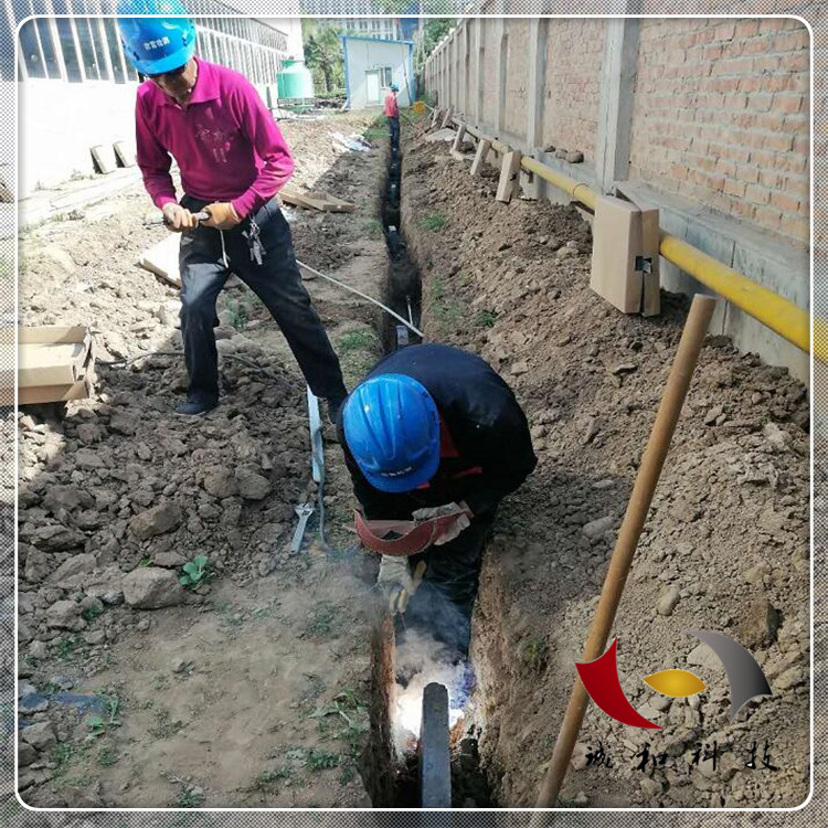 B.在地面挖深約0.8M、長(zhǎng)2M、寬2M地溝,如上圖所示,在如圖所示位置均勻置入9根1.4M長(zhǎng)2鍍鋅管(入地溝下約600mm),然后在約離地面800mm處、300mm處分別焊接12根40*4鍍鋅鋼板;各接地模塊的極芯互相并聯(lián)或與引下線連接時(shí)采用40*4鍍鋅扁鋼焊接。焊接工藝應(yīng)符合國(guó)家相關(guān)規(guī)范要求。